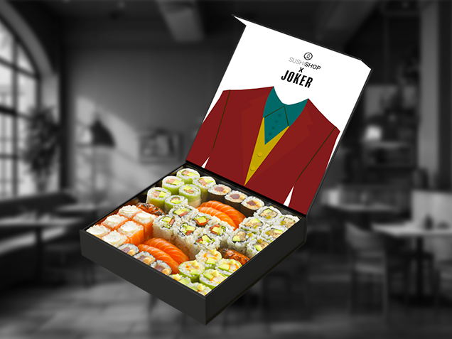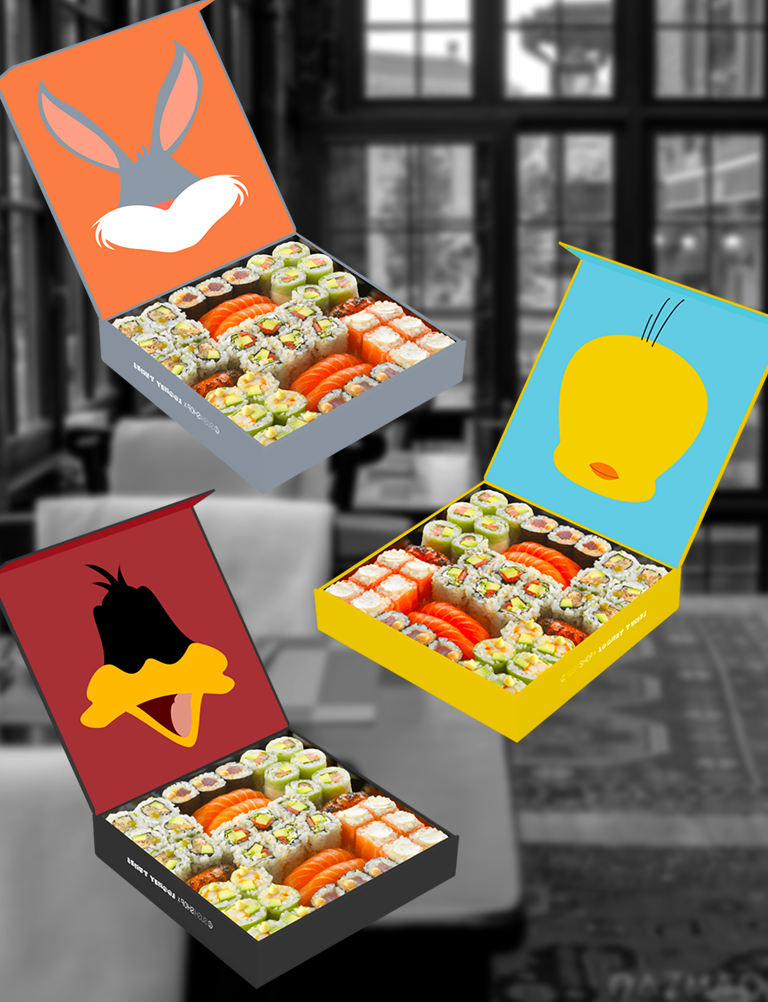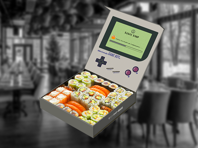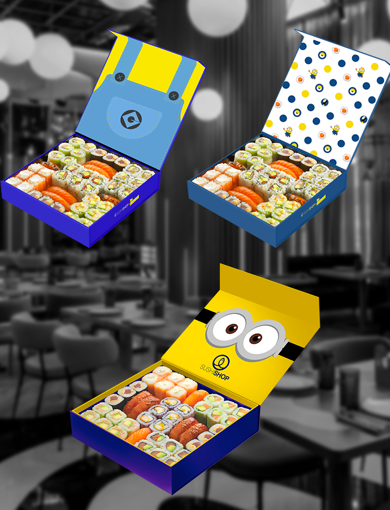 Box Création de boîtes fictives pour Sushi Shop, imaginant des collaborations entre la marque alimentaire et des licences de films ou de séries