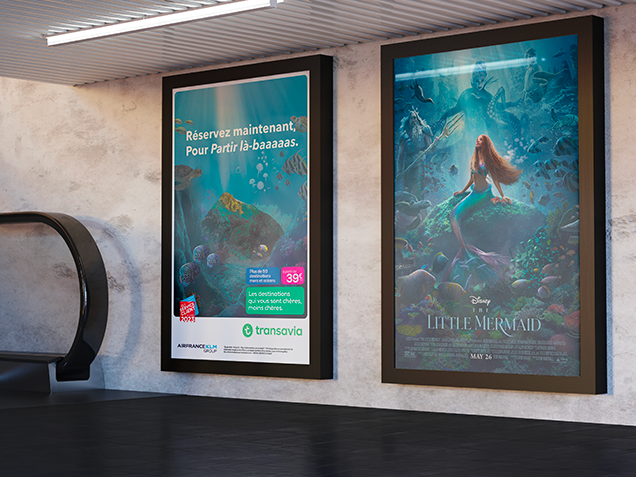 Proposition de visuels publicitaires dans le cadre d’un partenariat entre Transavia et la sortie du film La Petite Sirène.